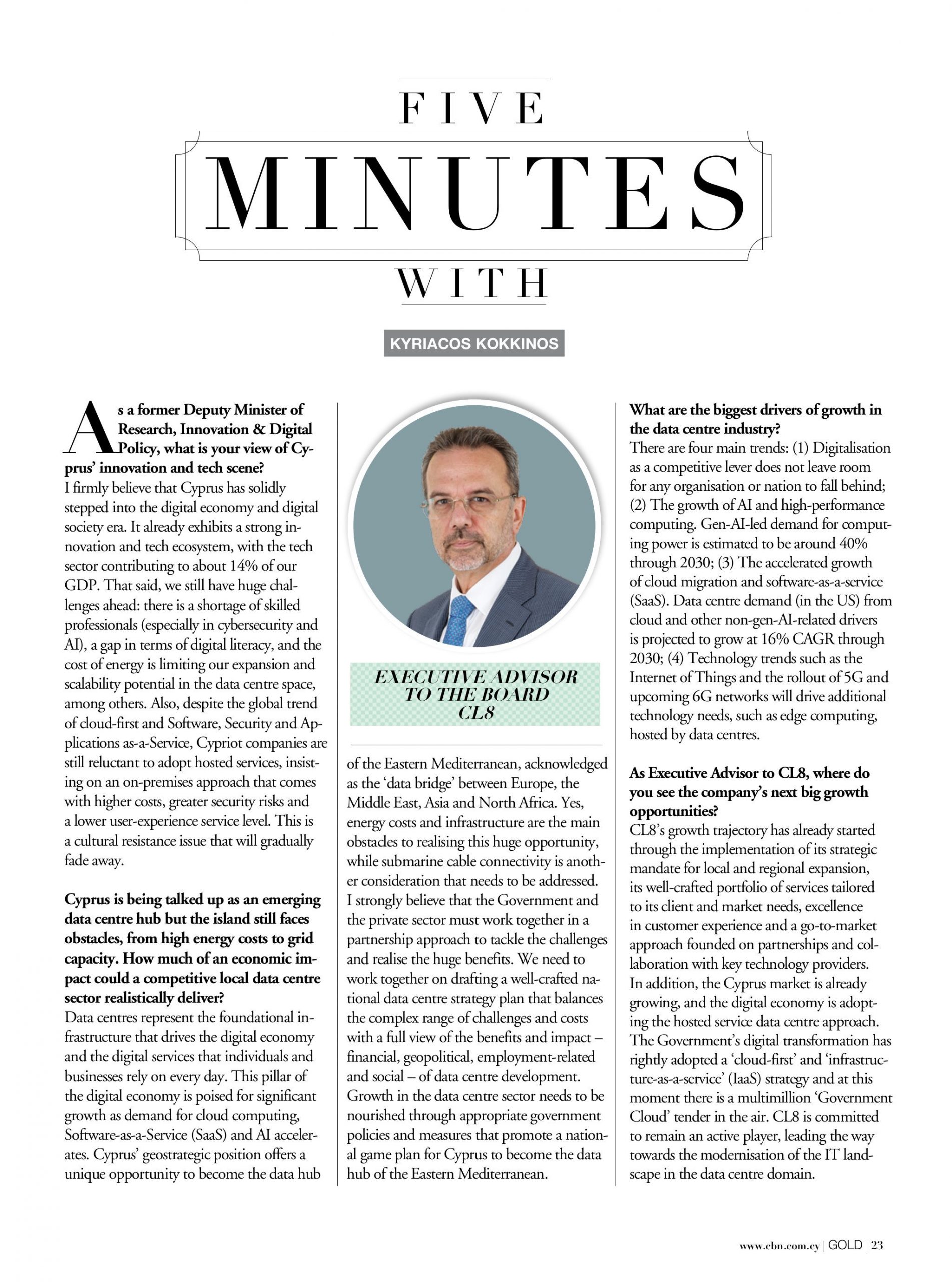 Kyriacos Kokkinos, Executive Advisor to the Board at CL8, outlines the path forward in this essential interview. He emphasizes that a well-crafted national strategy is required to balance the geopolitical, economic, and infrastructure elements necessary for a successful data centre future.